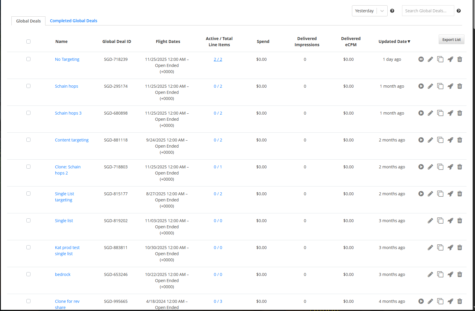 Global Deals – List View